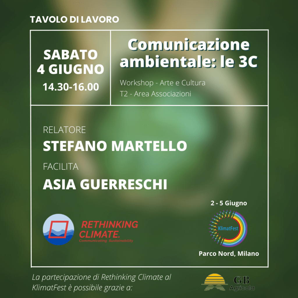 Vi aspettiamo il 4 Giugno alle 16:00 allo stand di Rethinking Climate del Klimat Fest 2022 (Lago di Niguarda, in Via Luigi Ornato 138)